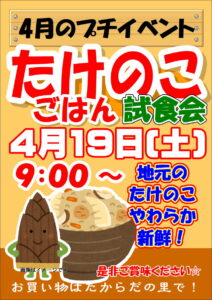 2025年4月プチイベントたけのこごはん 投稿者 作成者: adminmaster 投稿日 2025年4月5日 2025年4月プチイベントたけのこごはん へのコメントはまだありません コメントを残す コメントをキャンセルメールアドレスが公開されることはありません。 ※ が付いている欄は必須項目ですコメント ※ 名前 ※ メール ※ サイト 次回のコメントで使用するためブラウザーに自分の名前、メールアドレス、サイトを保存する。 上に表示された文字を入力してください。