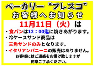 1111ベーカリーお知らせ 投稿者 作成者: adminmaster 投稿日 2025年11月5日 1111ベーカリーお知らせ へのコメントはまだありません コメントを残す コメントをキャンセルメールアドレスが公開されることはありません。 ※ が付いている欄は必須項目ですコメント ※ 名前 ※ メール ※ サイト 次回のコメントで使用するためブラウザーに自分の名前、メールアドレス、サイトを保存する。 上に表示された文字を入力してください。