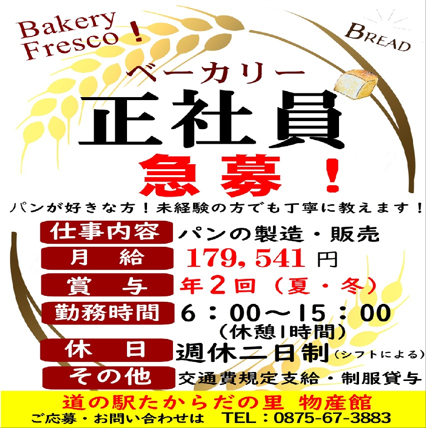 ベーカリー“Fresco!フレスコ”求人のお知らせ